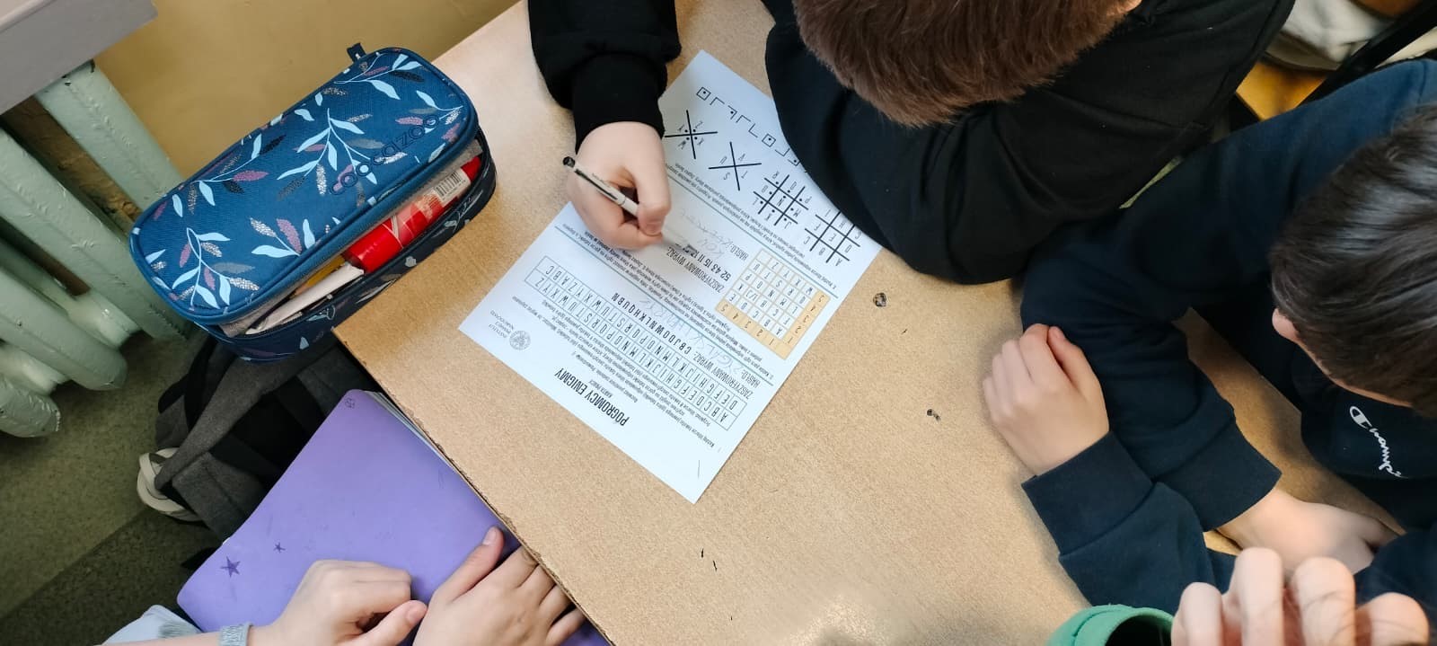 Po interesującym wprowadzeniu, nadszedł czas, aby uczniowie samodzielnie złamali kilka szyfrów. W praktycznej części zajęć ich celem było rozwiązanie ćwiczeń z karty pracy, w których to musieli wykazać się umiejętnościami przy łamaniu m.in. szyfru Cezara czy Polibiusza. Uczniowie z powierzonego zadania wywiązali się wzorowo, pokazując, że szyfry nie mają przed nimi tajemnic.