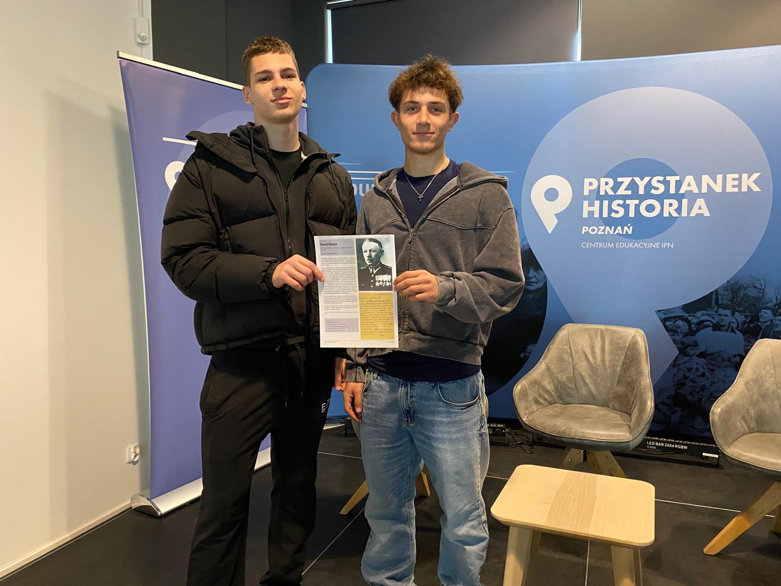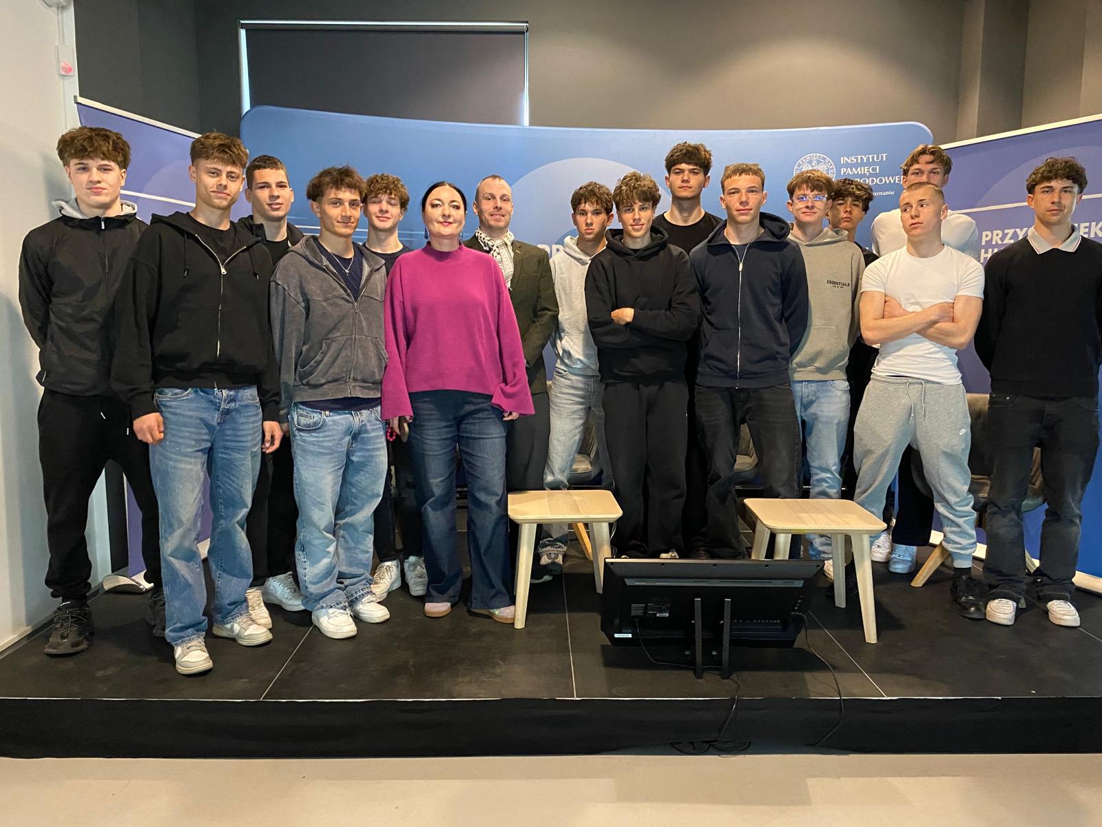 Uczestniczący w warsztatach nauczyciele oraz uczniowie Liceum Ogólnokształcącego Mistrzostwa Sportowego im. Poznańskich Olimpijczyków w Poznaniu otrzymali guzik katyński w formie przypinki, będący częścią akcji „Przypnij guzik pamięci”.
