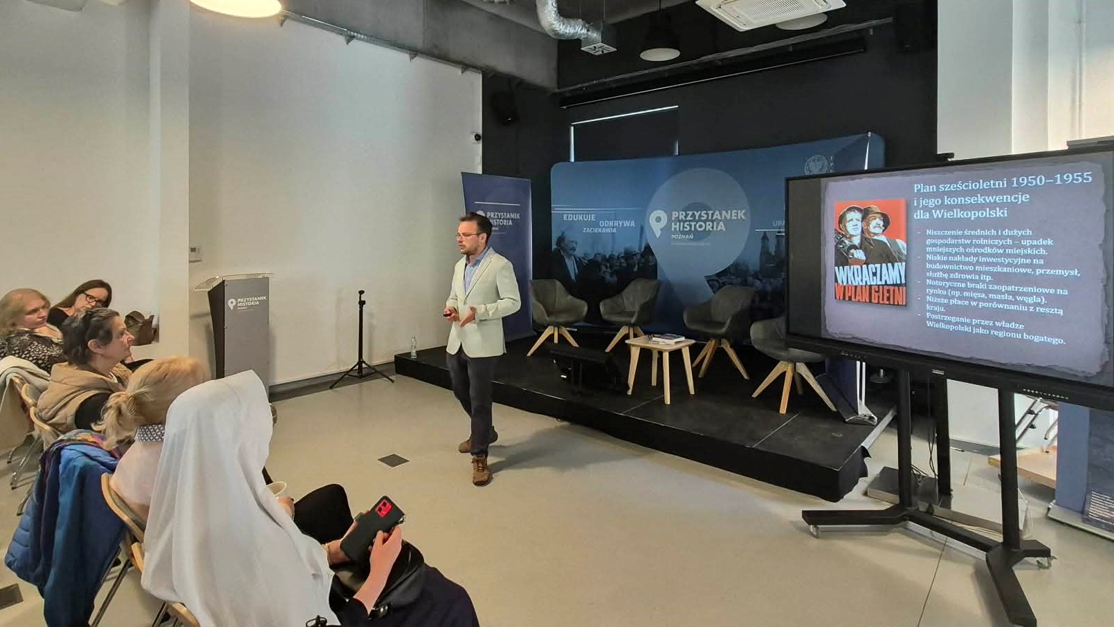 Zajęcia rozpoczęły się w „Przystanku Historia” prelekcją wprowadzającą w tematykę Poznańskiego Czerwca 1956 r. Następnie uczestnicy wzięli udział w spacerze edukacyjnym, podczas którego zwiedzili m.in. ulice Romka Strzałkowego, Petera Mansfelda, Jana Kochanowskiego i Dąbrowskiego ze wskazaniem konkretnych odniesień do historii poznańskiego buntu sprzed 70 lat. Spacer zakończył się pod Pomnikiem Poznańskiego Czerwca 1956 na pl. Adama Mickiewicza.