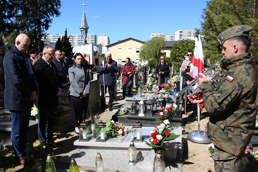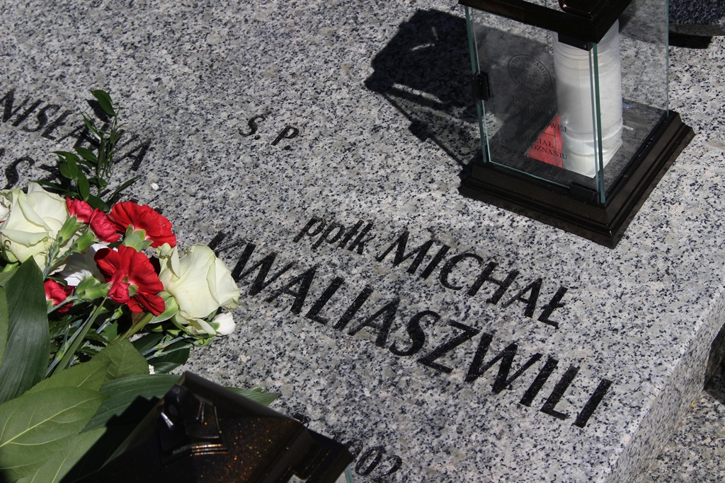 Następnie uczestnicy uroczystości przeszli nad grób ppłk. Michała Kwaliaszwiliego, by złożyć tam wiązanki oraz znicze.