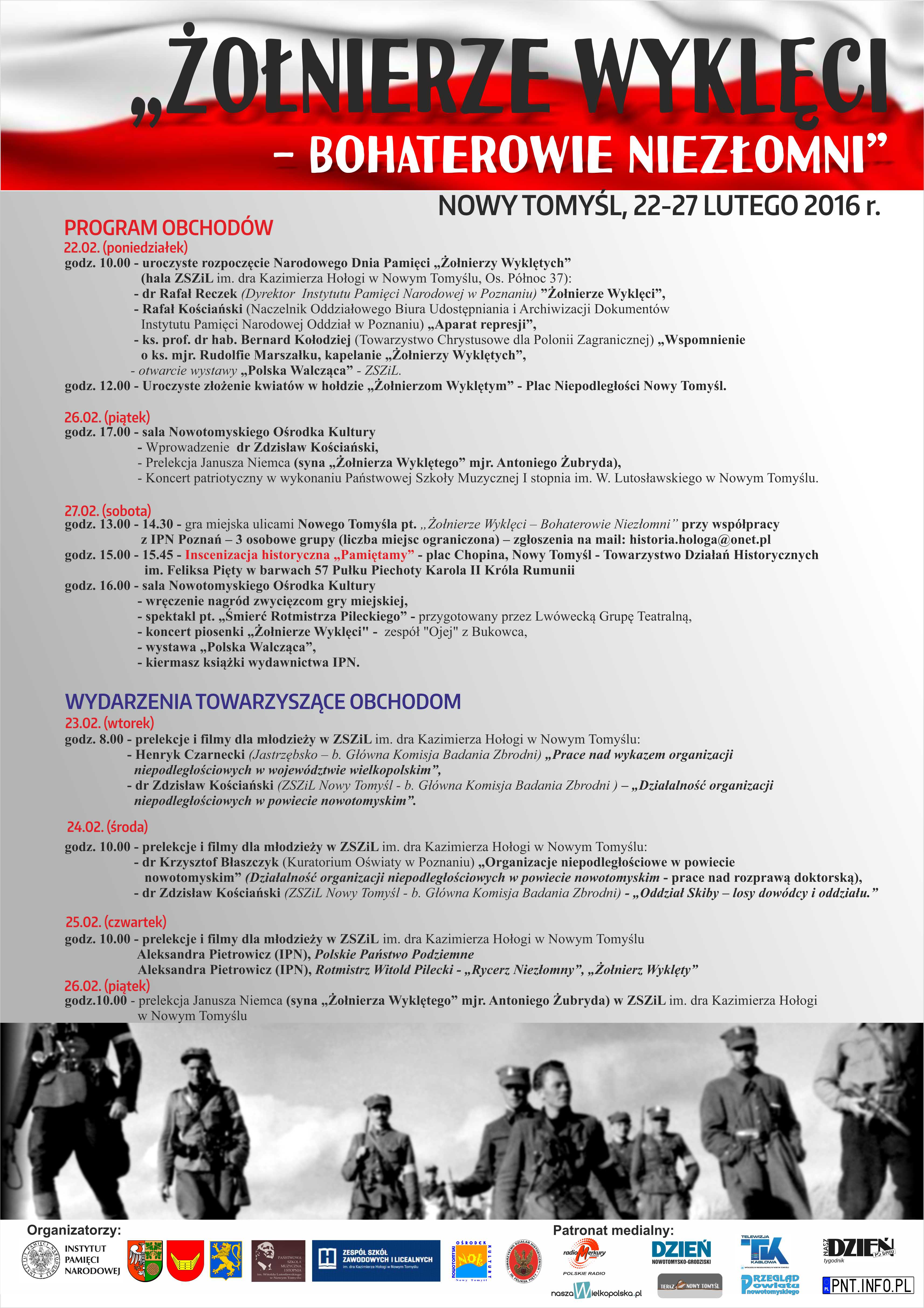 Urząd Miasta Nowy Tomyśl, Starostwo Nowotomyskie, Zespół Szkół Zawodowych i Licealnych im. dr. Kazimierza Hołogi w Nowym Tomyślu przy współpracy Instytutu Pamięci Narodowej Oddziału w Poznaniu zorganizowali tydzień pamięci o Żołnierzach Wyklętych.