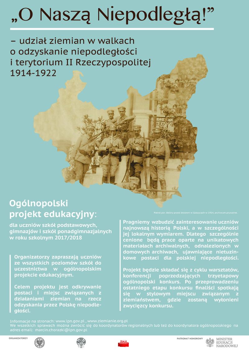 Konkurs wiedzy o ziemiaństwie polskim jest organizowany od pięciu lat przez Instytut Pamięci Narodowej i Polskie Towarzystwo Oddział Kraków. Tegoroczna edycja poświęcona jest udziałowi ziemiaństwa w walkach o niepodległość w latach 1914-1922. Jest to szczególna okazja by przywrócić pamięci społecznej ludzi zasłużonych dla naszego bytu państwowego, ludzi zapomnianych, wypędzonych, ograbionych nie tylko z dobytku, ale przede wszystkim dobrego imienia.