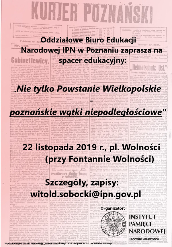 22/11/2019Spacer edukacyjny „Nie tylko Powstanie Wielkopolskie – poznańskie wątki niepodległościowe” – Poznań, 22 listopada 2019
