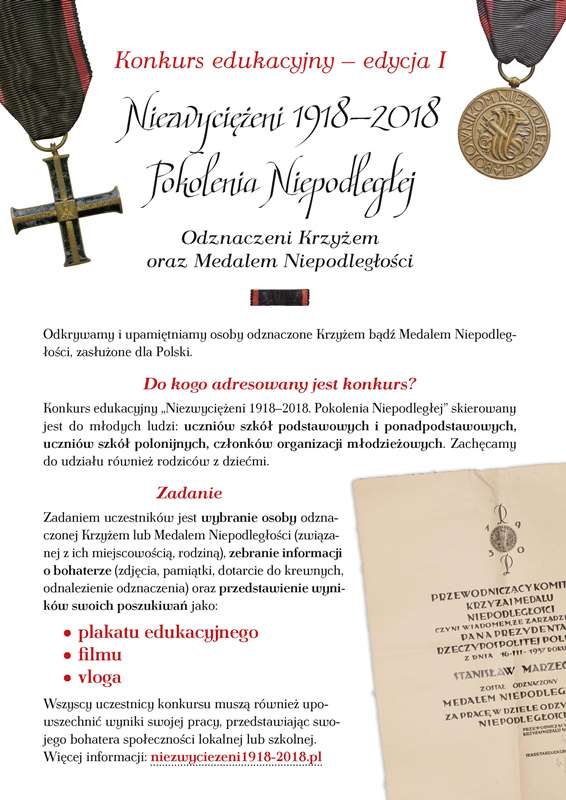 21/06/2018Konkurs „Niezwyciężeni 1918-2018. Pokolenia Niepodległej”. Wyniki etapu regionalnego
