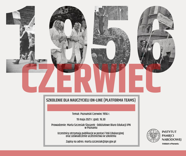 19/05/2021Dla nauczycieliSzkolenie dla nauczycieli „Poznański Czerwiec 1956” – w 65. rocznicę wydarzeń